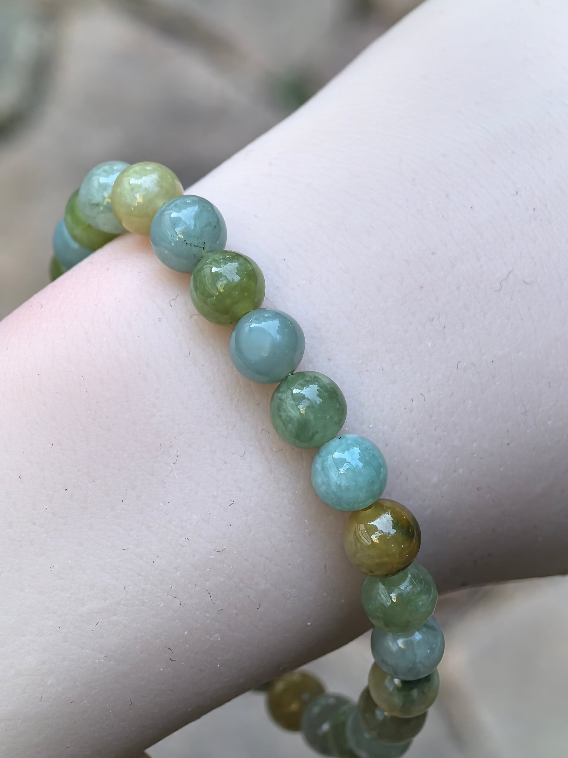 Natural Grade-A Jadeite Bracelet – Multicolor Glutinous Burmese Jade Beads 7.5mm