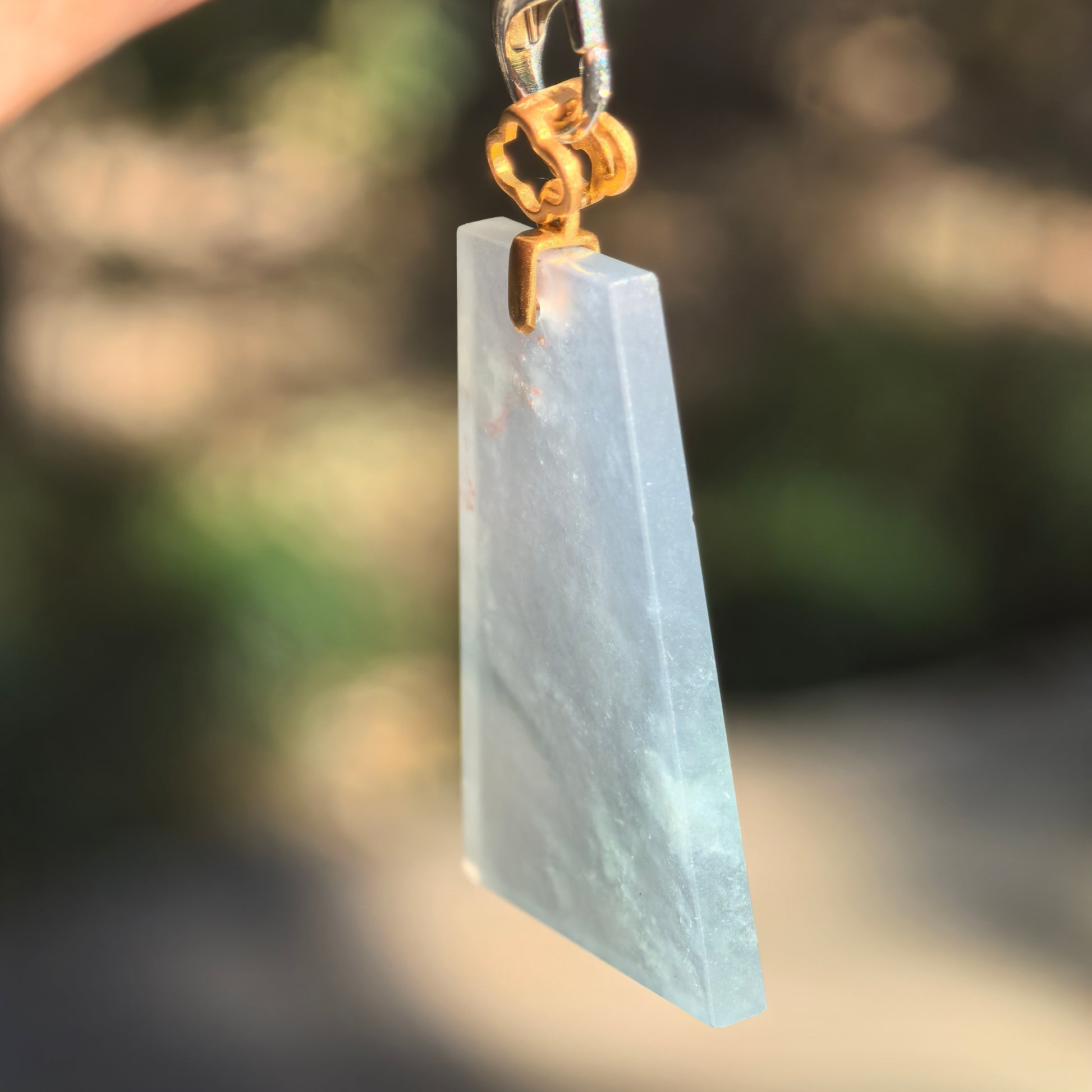 Natural Grade-A Jadeite Icy Translucent Plain Jade Plaque Pendant with 18K Gold Bail · Burmese Jade