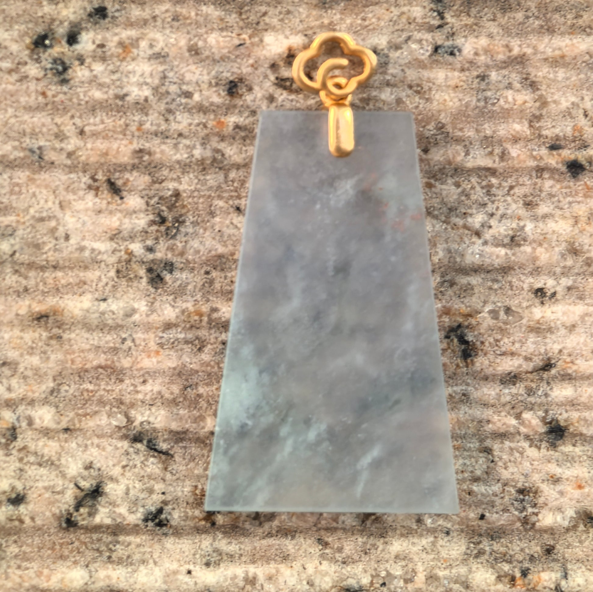 - Plain jade plaque (trapezoid) jadeite pendant with an 18K gold bail, finished with a smooth, refined polish for comfortable daily wear