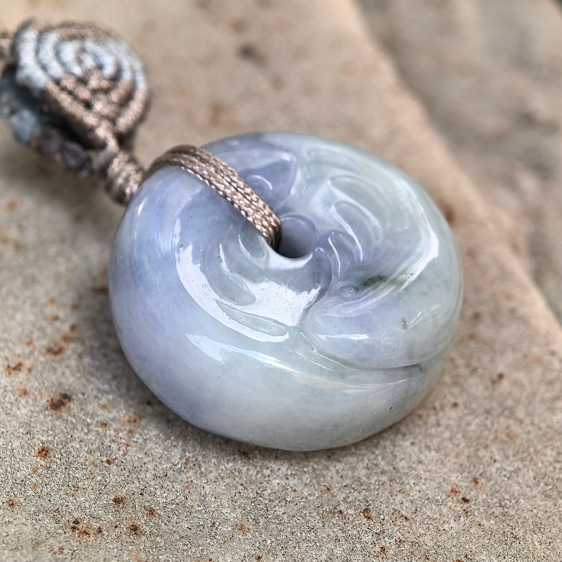 Finished with a comfortable braided cord, this pendant sits light on the neck and works as an everyday talisman-style accessory. Visually clean and well-balanced, it’s an easy gift choice for anyone who loves understated lavender jadeite.